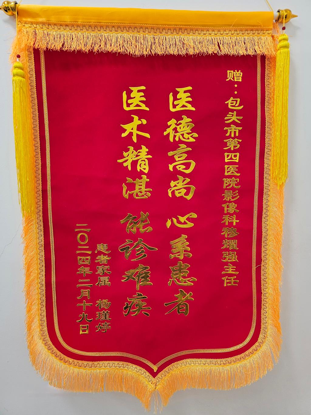 目前孩子已在北京成功手术,主刀医生告诉孩子母亲,孩子很幸运,在病灶还小的时候就被及时发现,及时进行了治疗。肿瘤在患儿体内每多停留一分钟,孩子的危险就增加一分。看着恢复健康的宝宝,孩子的母亲感激涕零,因此在春节一过,就亲自赶到医院为穆耀强主任送上这面锦旗,感谢主任医术高超慧眼如炬,更感激主任锲而不舍一片仁心。