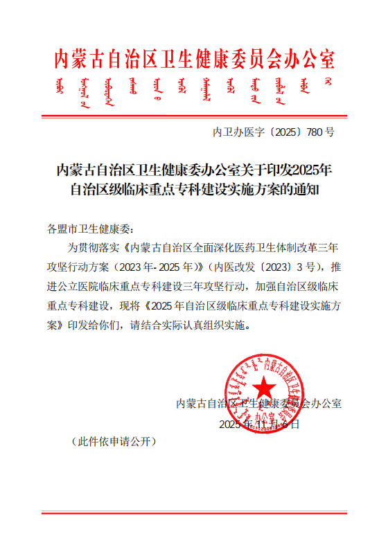 近日,内蒙古自治区卫生健康委员会正式公布临床重点专科建设项目名单,包头市第四医院骨科凭借雄厚的综合实力、卓越的医疗技术水平与突出的专科建设成果,成功入选,被确定为“自治区临床重点建设专科”!