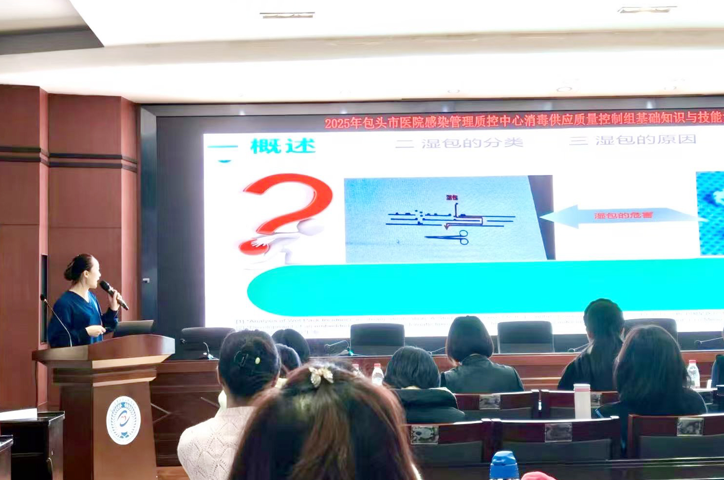 智慧讲堂上,高丹以临床案例为切入点,结合详实的数据与深刻的思考,拆解湿包产生的核心诱因,全方位展现了包头市第四医院消毒供应中心在处理相应问题时的实践与创新,同时搭配生动演示与互动设计,以专业且活跃的方式呈现课堂内容。最终获得评委老师的高度认可,斩获智慧讲堂环节第一名。