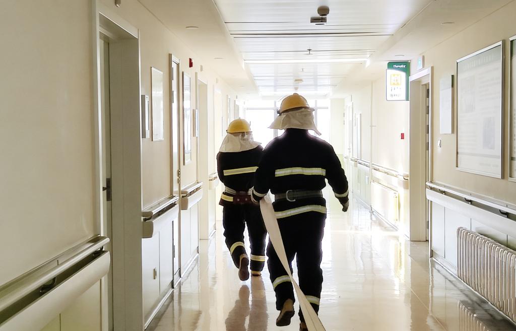 演练前,医院安全生产委员会精心制定了详尽的演练方案,召开了专题部署会,明确了各部门、各岗位的职责与任务。本次演练模拟4号楼耳鼻喉科因电器短路引发“火情”,烟雾迅速蔓延。随着消防警报骤然响起,演练正式拉开序幕。