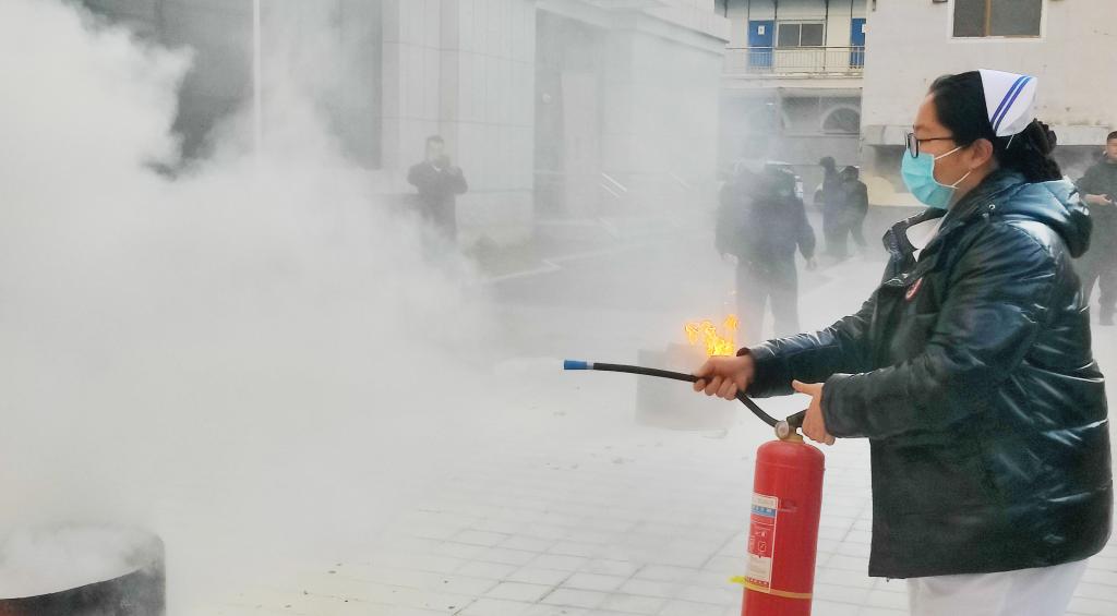 初期处置,有条不紊:“火情”发现人第一时间拨打119报警,同步上报医院保卫科及总指挥组,同时利用就近灭火器进行初期扑救。