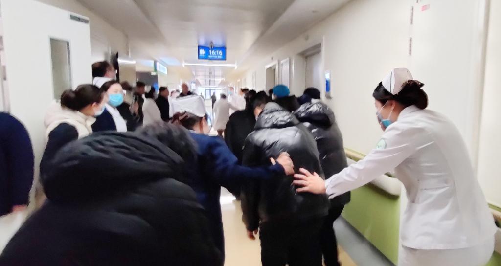 疏散有序,生命至上:疏散引导组人员迅速到达各楼层、通道关键位置,指引医护人员按照“重症患者优先、轻症患者及家属随后”的原则,沿指定疏散路线,低姿、捂口鼻,快速有序撤离至户外安全集合点。医护人员沉着冷静,对行动不便的患者采用轮椅、担架、搀扶等方式协助转移,充分体现了“生命至上”的原则。
