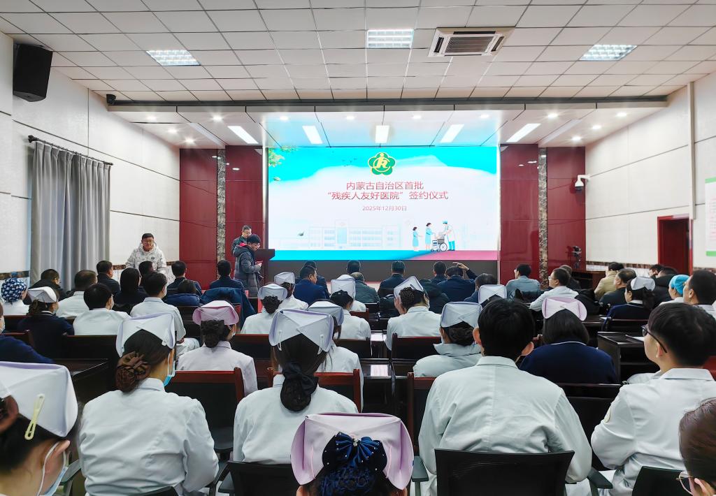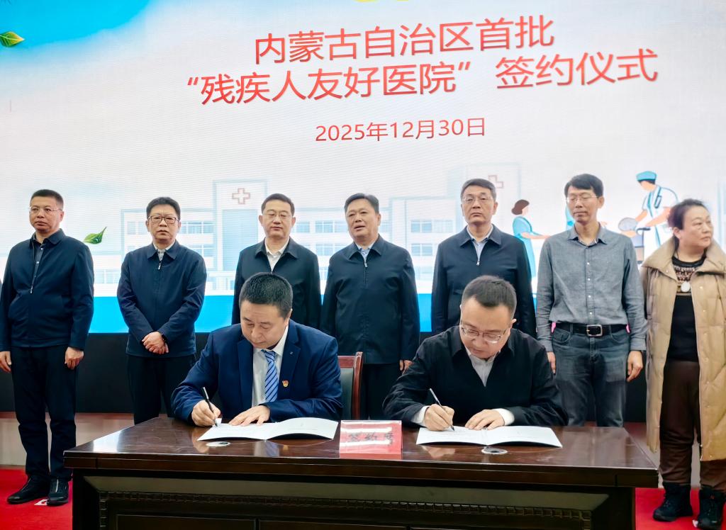 为进一步优化残疾人就医体验,保障残疾人平等、便捷、有尊严地享受医疗健康服务,切实提升残疾人医疗服务水平,2025年12月30日,内蒙古自治区首批“残疾人友好医院”签约仪式在包头市第四医院行政楼会议室隆重举行,自治区残联、自治区卫健委、市残联、市卫健委领导及首批参与创建的三家市级医院负责人共同见证这一温暖时刻。仪式由市政府副秘书长李红叶主持。